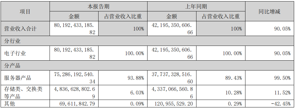 8月26日周二,浪潮信息发布半年报,具体来看: